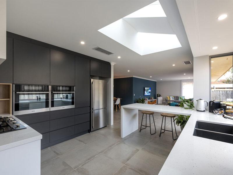 When we visit you in your home, we will measure your kitchen space and discuss your kitchen renovation needs. We will show you kitchen design ideas so that you can how we can resolve any issues that make your current kitchen difficult to entertain in or cook and serve from. When we have a good understanding of how you and your family use your kitchen, you can then browse our extensive range of solid kitchen surface and quality quartz kitchen bench tops, lighting options, and colour and design choices that will complement the rest of your home.